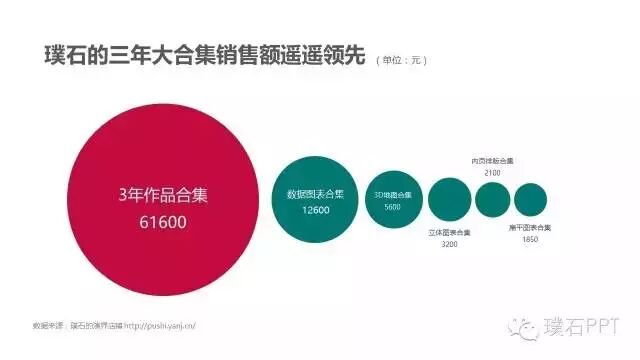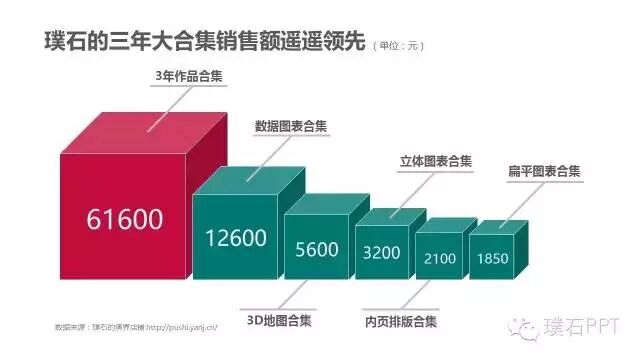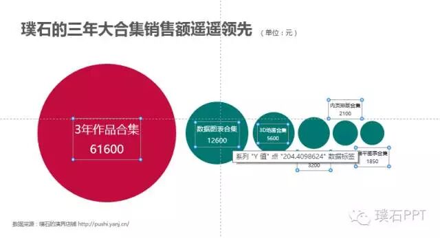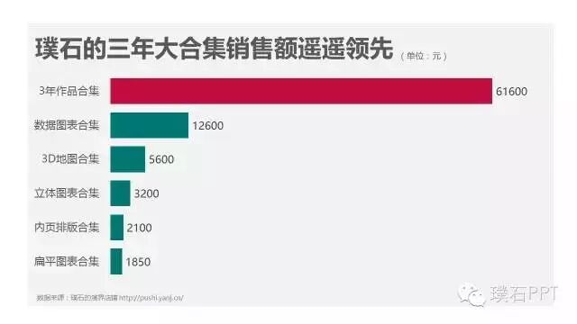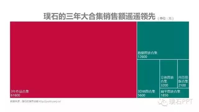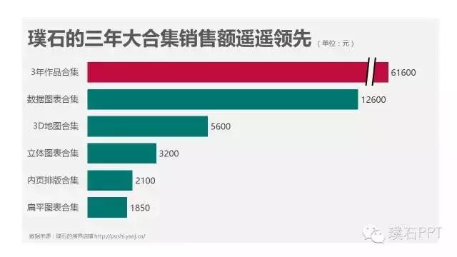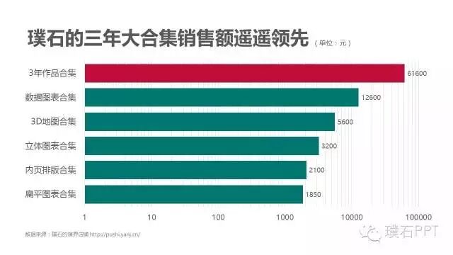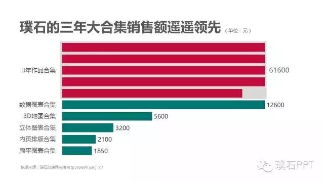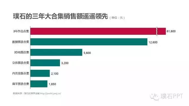 當我們需要突出這個差異的情況下,可以保留這個差異,在這個圖表中,我要表現的就是“三年大合集”銷量領先,那麼這個圖表也正給人這種感覺,所以,雖然看上去很突兀,但也正好達到了我們要傳達的感覺。