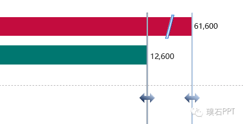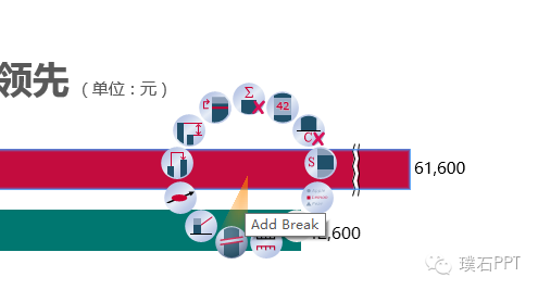 除了手動添加截斷標識之外,一些工具也可以添加這種階段符號。比如Think-cell Chart 這個PPT外掛程式,就可以對較大的異常值進行截斷。