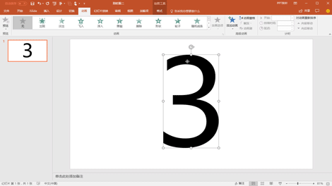 比如,想做出下邊這個快閃倒計時,就需要給數字添加兩個動畫效果組合。