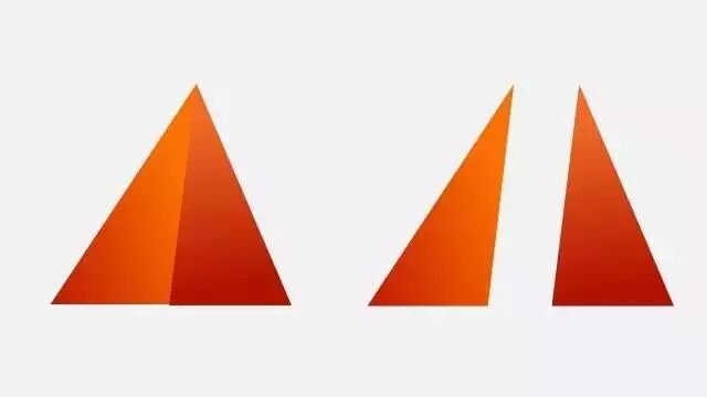 插入兩個三角形,通過調整漸變色,填充兩個三角形的顏色,最後把這兩個三角形拼湊組合在一起,形成一個具有立體感的三角形。注意這裡要使用組合工具。