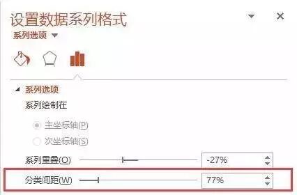點擊滑鼠右鍵,選中【設置資料數列格式】,再通過分類間距,就可以改變柱狀圖的寬度啦!