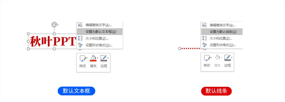 當然,除了可以設置默認形狀外,我們還可以設置預設線條、預設文本。